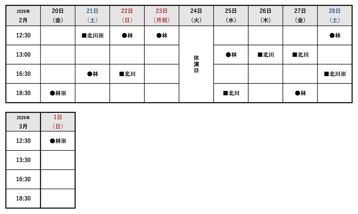 ■※印・・・ スペシャルカーテンコール(初日・千穐楽を記念してキャストよりご挨拶)
